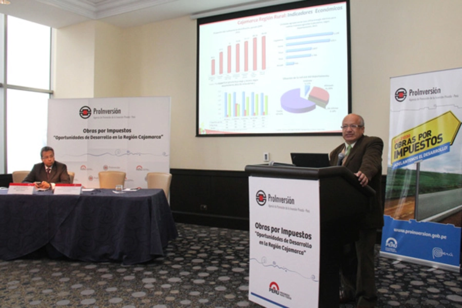 El acto contó con la participación del Presidente del Gobierno Regional de Cajamarca, César Aliaga Díaz, y el Director Ejecutivo de ProInversión, Carlos Herrera Perret, quien saludó la decisión del Gobierno Regional por ejecutar Obras por Impuestos y ratificó el compromiso de ProInversión de asistir técnicamente a los funcionarios de Cajamarca y de las empresas privadas durante todo el proceso de aplicación de este mecanismo, a fin de contribuir a mejorar las condiciones de vida en dicha región.