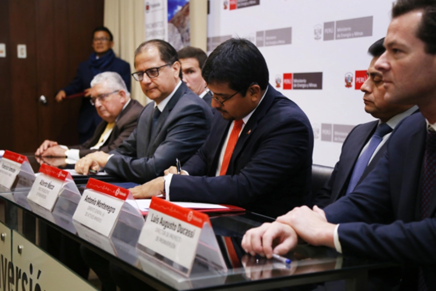 Lima, 12 de junio de 2018.- En la sede institucional del Ministerio de Energía y Minas (Minem), ubicada en San Borja – Lima, se llevó a cabo esta mañana el acto de suscripción del contrato de transferencia del proyecto minero Michiquillay, entre el Estado peruano, la empresa Southern Peru Copper Corporation, Sucursal del Perú, y ProInversión (como interviniente).