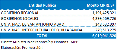 La Directora de Inversiones Descentralizadas de ProInversión, Denisse Miralles, indicó también que desde la creación del mecanismo (2008) a la fecha, Cusco ha comprometido S/ 124 millones en 15 proyectos de inversión pública. Agregó que esto ha sido posible por el compromiso y trabajo conjunto del Gobierno Regional, dos (02) Municipalidades Provinciales, nueve (09) Municipalidades Distritales y ocho (08) empresas que vienen participando en el financiamiento de proyectos de inversión pública a través de esta modalidad, beneficiando a más de 800 mil cusqueños.