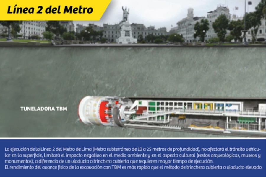 Se optó por un Metro subterráneo porque, además, minimizará los tiempos de ejecución del proyecto, dado que el método de excavación con tuneladora TBM tiene un rendimiento de 15 metros lineales por día, mientras que el método convencional tiene un rendimiento de 1 metro lineal por día.