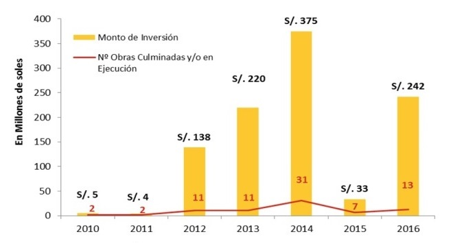 Lima, July 8th, 2016.– The Private Investment Promotion Agency (ProInversión) reports that 13 projects totaling S/. 242 million soles were awarded in the first half year to be executed through the Works for Taxes system.