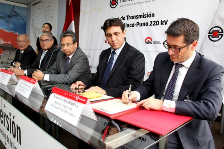 Lima, 18 de junio de 2015.- El Ministerio de Energía y Minas (MINEM), en representación del Estado Peruano, y la empresa concesionaria Transmisora Eléctrica del Sur 2 S.A., formada por el adjudicatario, firmaron el contrato de concesión del proyecto “Línea de Transmisión 220 kV Azángaro-Juliaca-Puno”.
