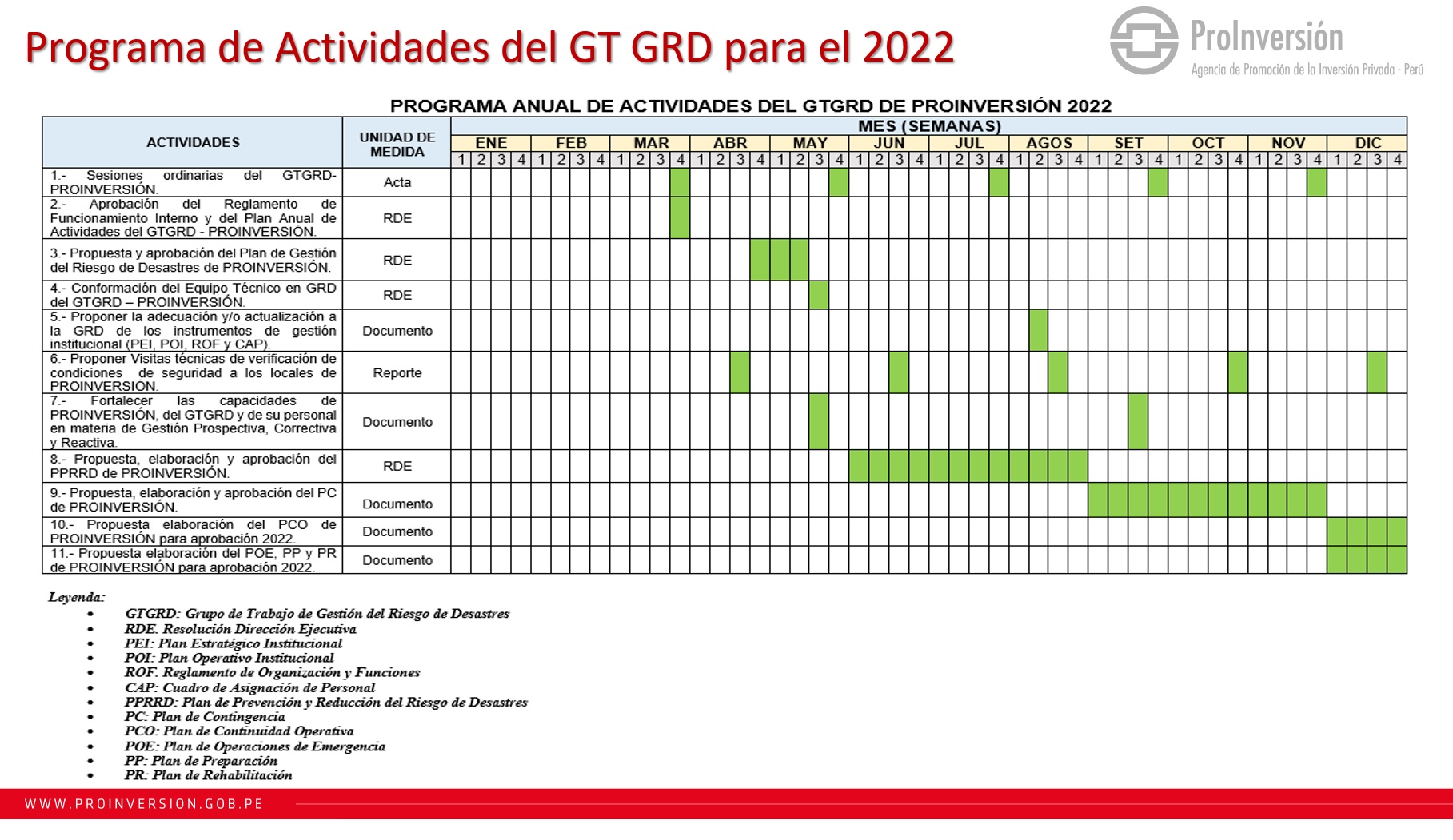 Acta Nº 01-2022-GTGRD/PROINVERSIÓN - Aprobación del Plan Anual de Actividades del GTGRD y otros