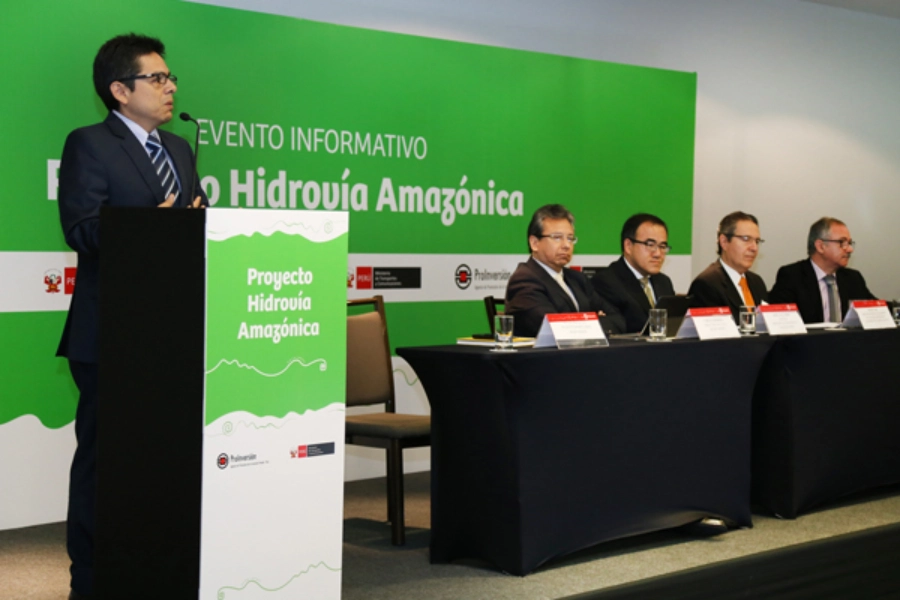 Intervinieron como expositores Felix Vasi, Director General de Transporte Acuático del MTC, quien detalló sobre la importancia del proyecto en la conectividad del país y el proceso de Consulta Previa; Julio Cardini, Asesor de Transacción del proyecto, quien expuso los aspectos técnicos; y Luis del Carpio, Jefe de Proyectos en Asuntos Portuarios de ProInversión, quien detalló sobre el proceso de promoción de la inversión privada de Hidrovía Amazónica. La clausura del evento estuvo a cargo del ministro de Transportes y Comunicaciones, José Gallardo Ku.
