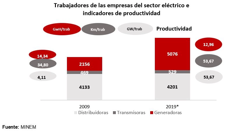 Segundo, las líneas de transmisión han logrado generar empleos directos e indirectos dentro de la cadena del sector energético y para otros sectores económicos. Por ejemplo, solo en el 2019, las líneas de transmisión generaron 1,000 empleos. No solo se generó más empleo, sino que este empleo fue más productivo. Por ejemplo, de acuerdo con el Ministerio de Energía y Minas, el número de Km por trabajador era 34 en el 2009 y ahora este indicador es de 53,67 Km, un incremento de más del 50% de productividad.
