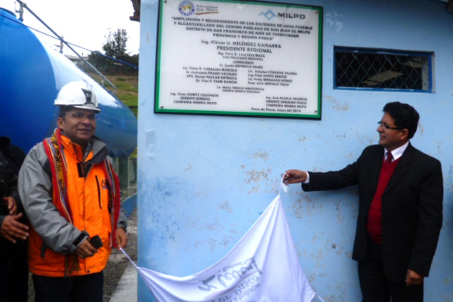Lima, 22 de mayo de 2014.- El Gobierno Regional de Pasco y la Compañía Minera Milpo inauguraron la obra de agua potable y alcantarillado construida en el centro poblado de San Juan de Milpo, distrito de Yarusyacán, provincia de Pasco, región Pasco, bajo la modalidad de Obras por Impuestos.