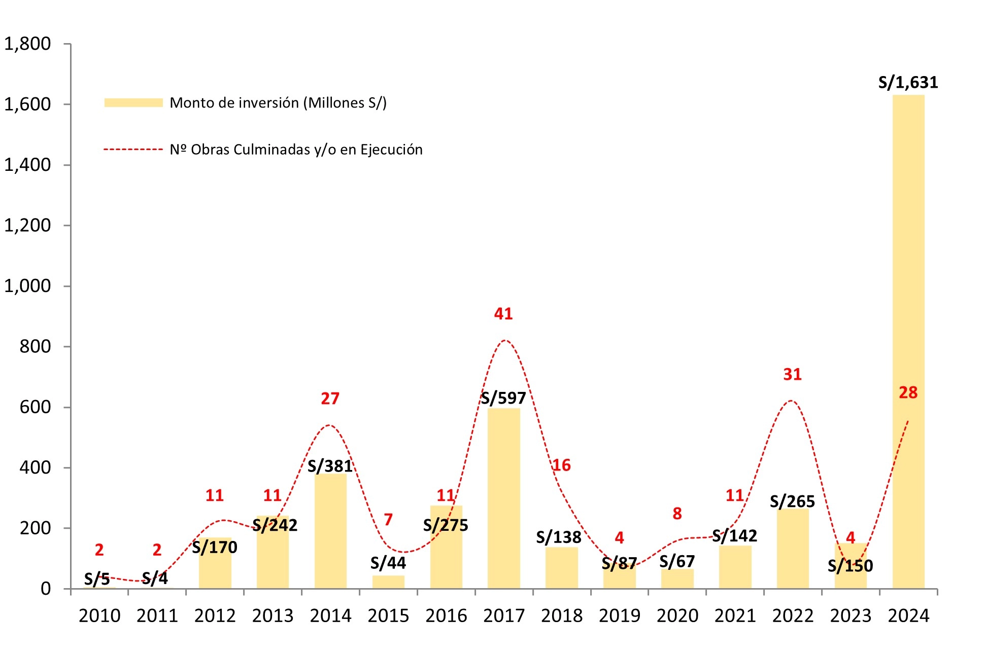 Incluyendo los resultados del primer semestre, entre el período 2009 – 2024 se han adjudicado 536 proyectos por un monto de inversión de S/ 9175 millones, beneficiando a 22 millones de peruanos. Asimismo, han intervenido 213 gobiernos locales, 21 gobiernos regionales, ocho entidades del Gobierno Nacional y dos universidades públicas.