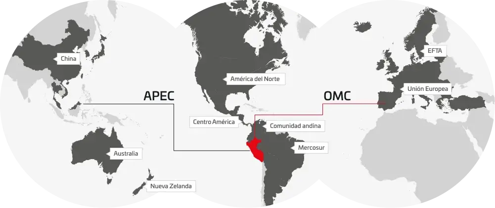 Acceso a más de 3 mil millones de consumidores, en países que concentran el 79% del PBI Mundial. 94% de las exportaciones