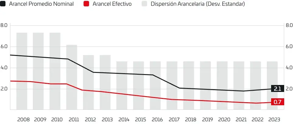 Evolución del arancel nominal, efectivo y la dispersión 202 – 2023*