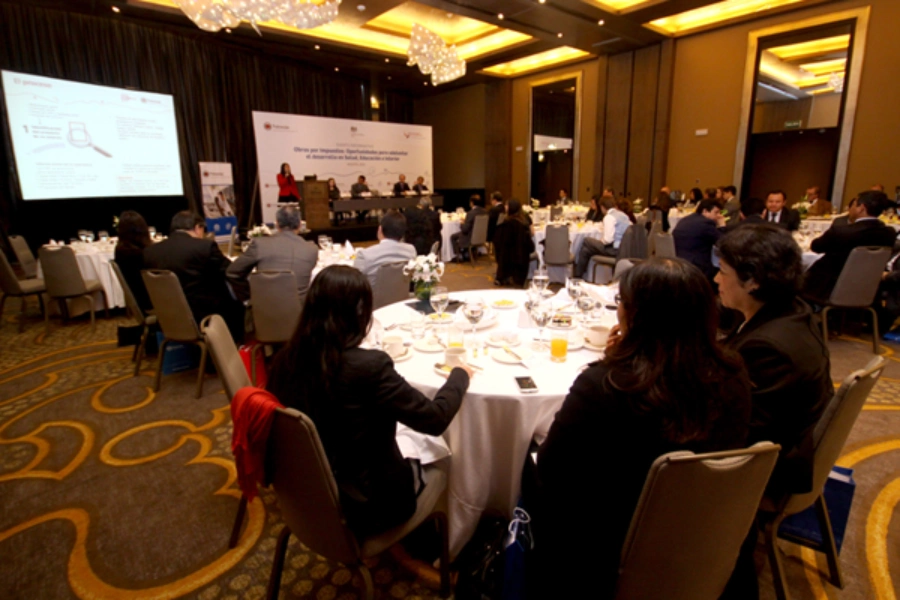 Lima, 31 de agosto de 2015.- ProInversión reunió a ejecutivos y representantes de empresas británicas para presentar la cartera de proyectos priorizados en materia de Salud, Educación y Seguridad para ser ejecutados a través del mecanismo de Obras por Impuestos.
