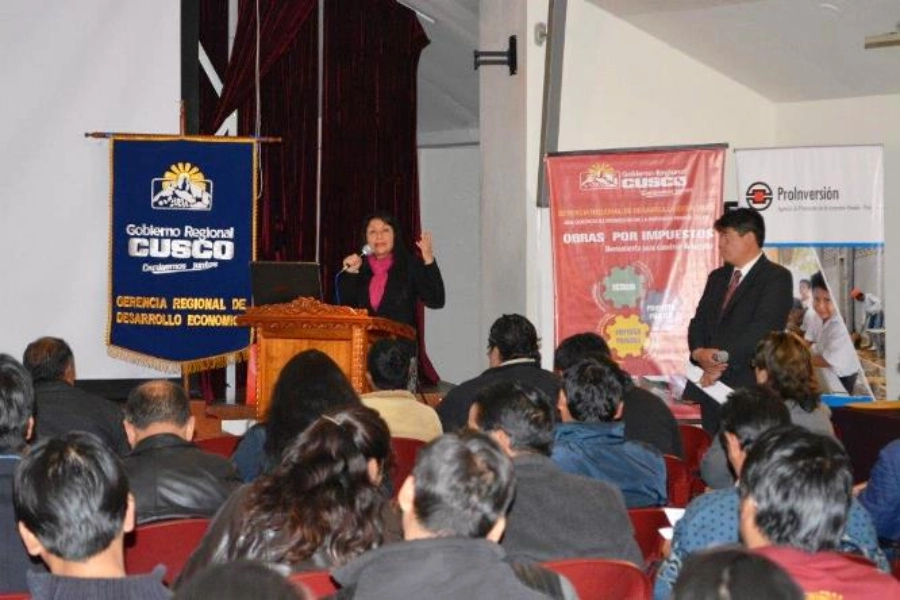Lima, 24 de septiembre de 2015.- La Agencia de Promoción de la Inversión Privada (ProInversión) y el Gobierno Regional del Cusco (GRC) organizaron el taller “Identificación de proyectos de inversión pública a ejecutarse mediante la modalidad de Obras por Impuestos”, dirigido a alcaldes provinciales, distritales, y funcionarios de las Gerencias de Planeamiento y Presupuesto de todos los Gobiernos Locales de la Región Cusco.