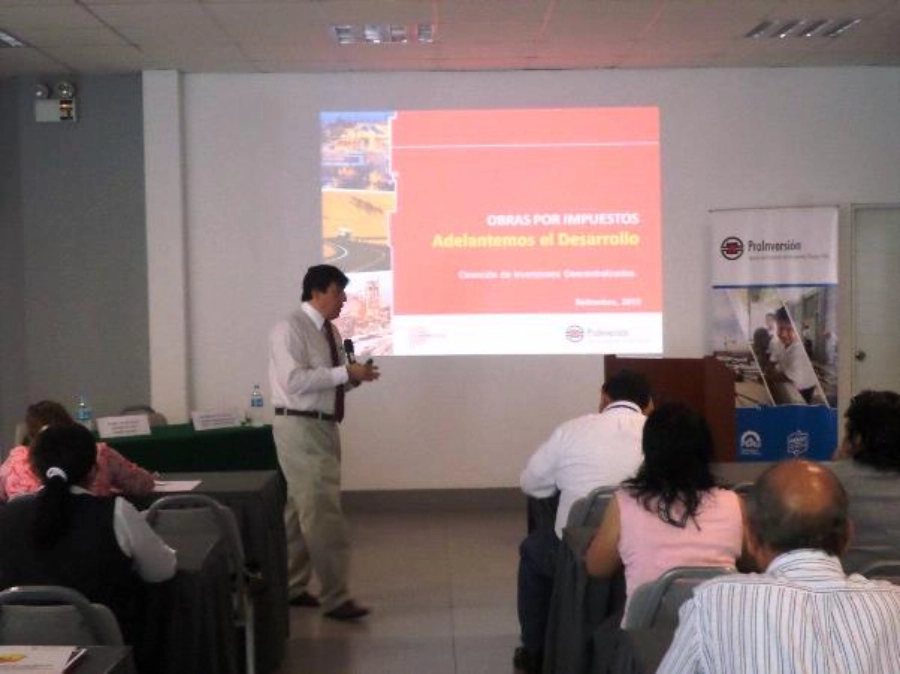 El taller se realizó con el objetivo promover la ejecución de proyectos del Gobierno Regional y los Gobiernos Locales de la Región Piura en el marco de la Ley 29230 – Obras por Impuestos. Durante el evento se expuso el marco legal, procedimientos para la aplicación y recomendaciones para una adecuada gestión de los proyectos a ejecutarse mediante el mecanismo de Obras por Impuestos.