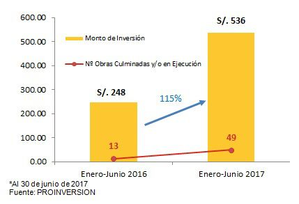 En el segundo semestre de 2017 se prevé que el monto adjudicado se incremente sustancialmente, considerando el dinamismo en la cartera de proyectos de los Gobiernos Regionales, Gobiernos Locales y los ministerios, agregó el Director Ejecutivo de ProInversión.