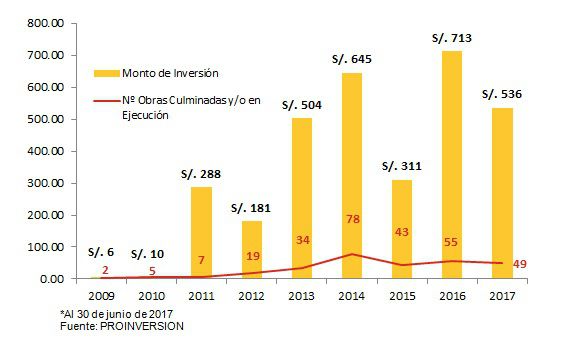 El monto de inversión logrado en lo que va del año supera en 115% al logrado en el mismo periodo del 2016, lo que muestra un considerable avance del mecanismo sustentado en la exhaustiva estrategia de fortalecimiento de capacidades desplegada por ProInversión desde el inicio del actual Gobierno.