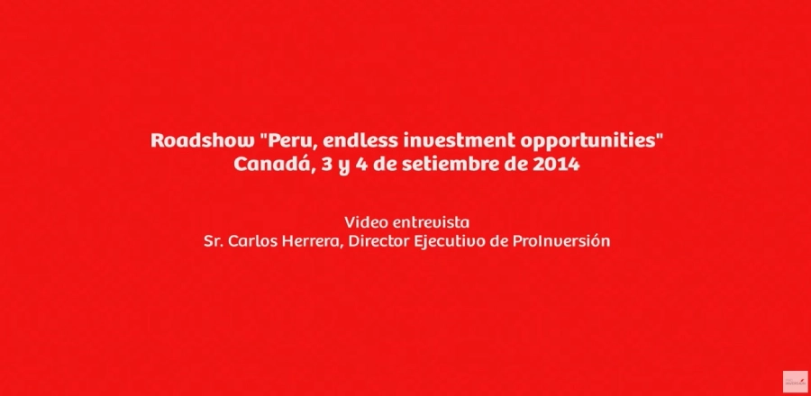 Lima, 01 de setiembre de 2014.- El Director Ejecutivo de ProInversión, Carlos Herrera Perret, cumple una misión de promoción en Toronto, Canadá, entre hoy miércoles (03) y mañana jueves (04) de septiembre, denominado “Peru, Endless investment opportunities”, con el objetivo de posicionar al Perú como plaza atractiva de inversión y presentar oportunidades específicas de inversión en nuestro país.